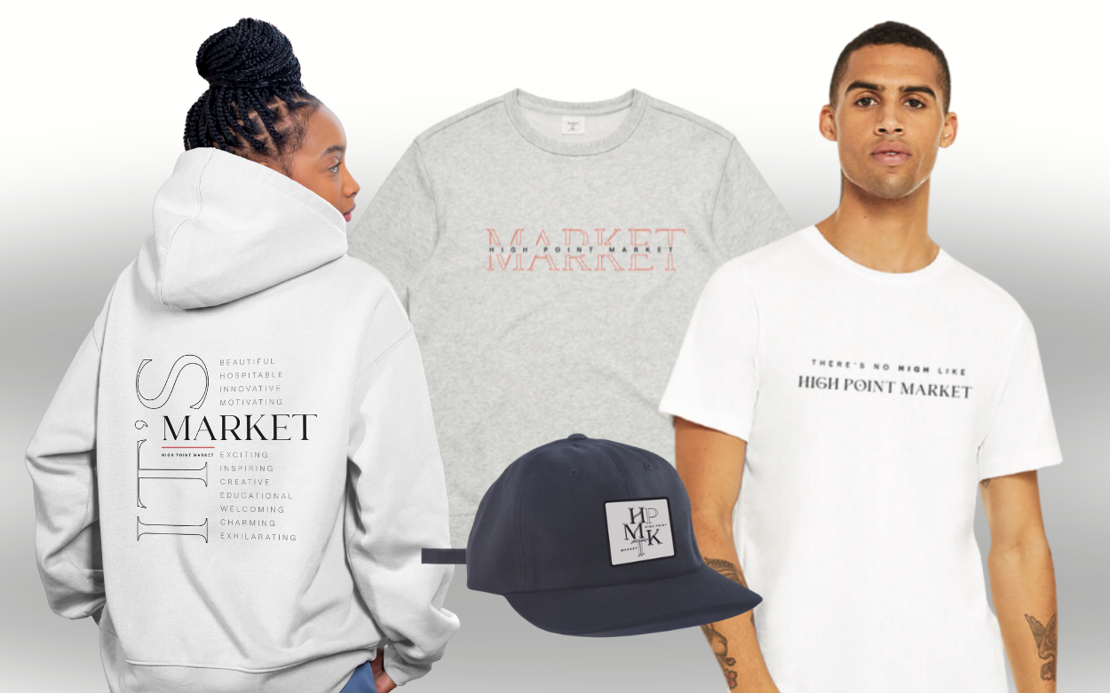 Guests of the trade show may select from limited edition, High Point Market-branded apparel, including crewneck sweatshirts, hoodies, T-shirts and hats. Items are priced from $25 to $55.