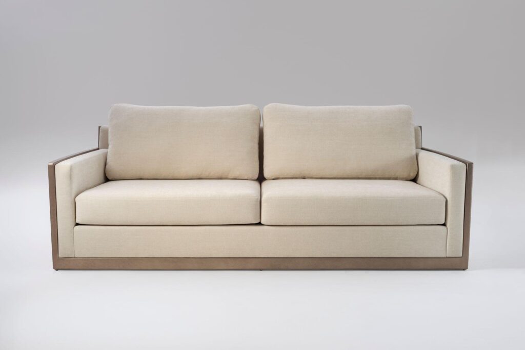 * The Origen Sofa 100 has evolved from the company’s Coco sofa. The tailored two-seater features distinctive, leather-accented arm fronts and is fully customizable.