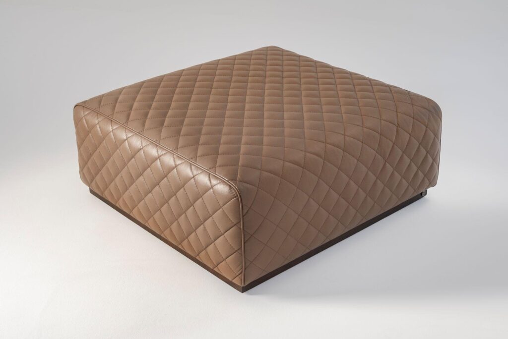 * The oversized Origen Ottoman 200 is a model of versatility. Use it for decorative displays or extra seating. It’s available in the company’s new diamond-quilted leather or woven raffia, with correlating or contrasting piping.