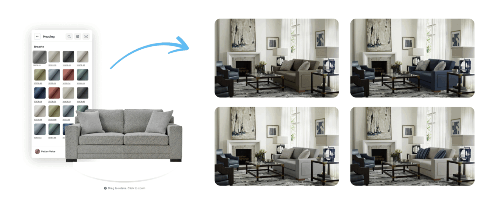 Traditional photography has become an expensive bottleneck for furniture manufacturers. Every time fabrics or finishes are updated, brands are forced to stage expensive photo shoots, ship samples, and recreate room settings—an approach that is no longer practical in a digital-first marketplace. At the same time, generative AI tools currently available to most marketing teams fail to deliver images that accurately reflect the product or brand, making them unsuitable for manufacturers who need precision and consistency.