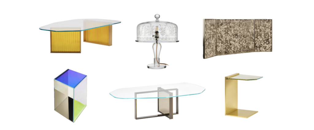 The expansive material palette emphasized pale Venetian glass, light green marble, raw and semi-precious minerals, alongside Rottet’s signature surfaces, dichroic glass and low coffee and side tables punctuated with the debut of Cake Lamp, a whimsical handmade light inspired by an elevated cake stand and featuring hand-etched crystal.