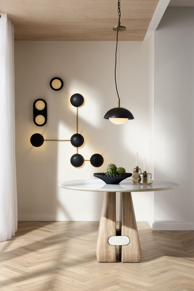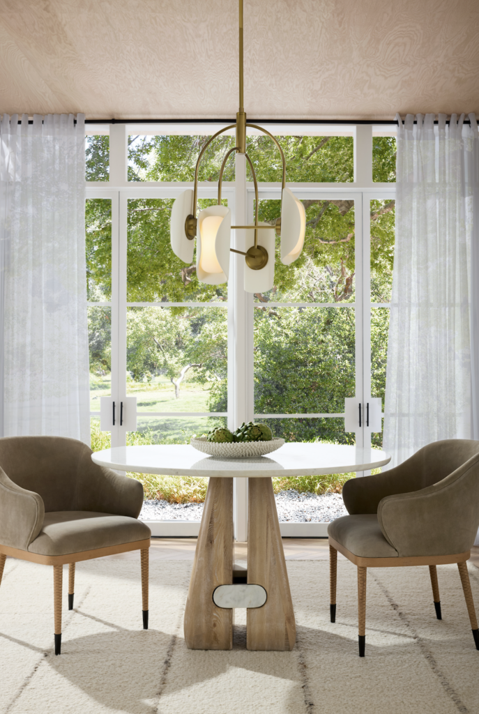 To bring warmth and humanity to the designs, the Workshop/APD team infused this sentiment throughout the collection. “As a firm, we’re passionate about the spaces between. This applies to structures, spaces, and materials, but also to past and present, to varying disciplines, partners and collaborators, and so much more,” said Workshop/APD associate principal Andrew Kline. “Collaborating with Arteriors allows us to work closely with artisans who can fully realize our visions and bring innovative concepts like these to life.”