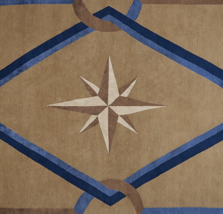 This new rug from Houston-based Turkish Rug Co. features crisp shades of blue and white. The strong, grid pattern creates a bold focal point for more traditional interiors. (Las Vegas, World Market Center, E1667)
