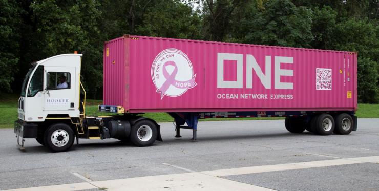 Hooker Furniture, a division of Hooker Furnishings, recently received new inventory of its Susan G. Komen® licensed collection via magenta shipping containers operated by Ocean Network Express (ONE). The eye-catching containers feature a pink ribbon – the international symbol for breast cancer awareness.