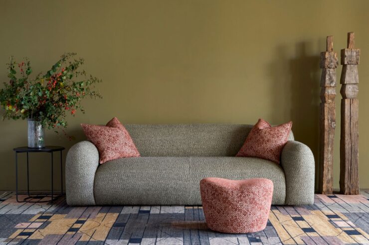 From Jocasta’s softly layered designs, such as Disa in Lapis, Patch in Cerulean, Afua in Olive and Marcie Mohair in Festuca, which bring movement and tonal richness to silhouettes, to Aurora’s more structured weaves, including Paloma Plaid in Chestnut and Teal and Odessa in Thermae, which lend definition and calm, the collections celebrate how fabric can enhance both structure and softness.