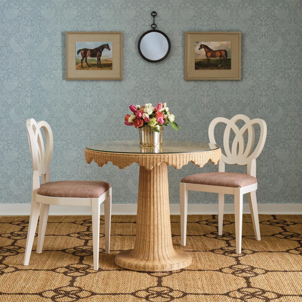 “The English snaffle bit is a classic equestrian motif that you see throughout the fashion world,” Carson explains. “For Ballard, I’m using it on everything from upholstery, drapery, and throw pillows to rugs, furniture, and entertaining décor.”