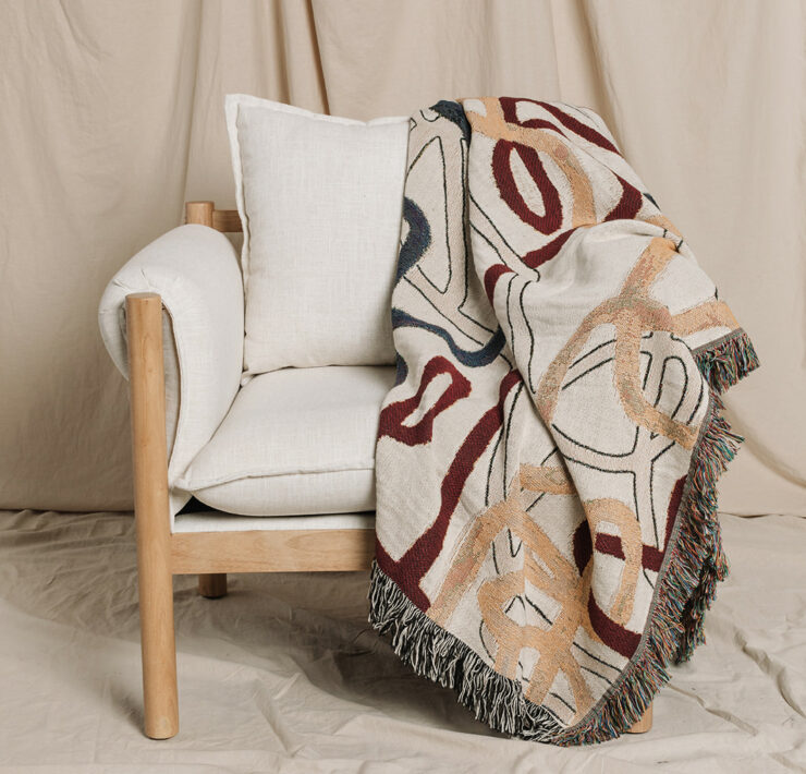 PAR KER made specializes in translating the work of interdisciplinary artist Parker Heath’s original abstract pieces into modern home + living collections with products that include original paintings, handmade mirrors, woven textile wall art, prints, lifestyle accessories, apparel, jacquard woven throw blankets, pillows, socks, wallcovering, and now a fine art print collection with Studiomarks.