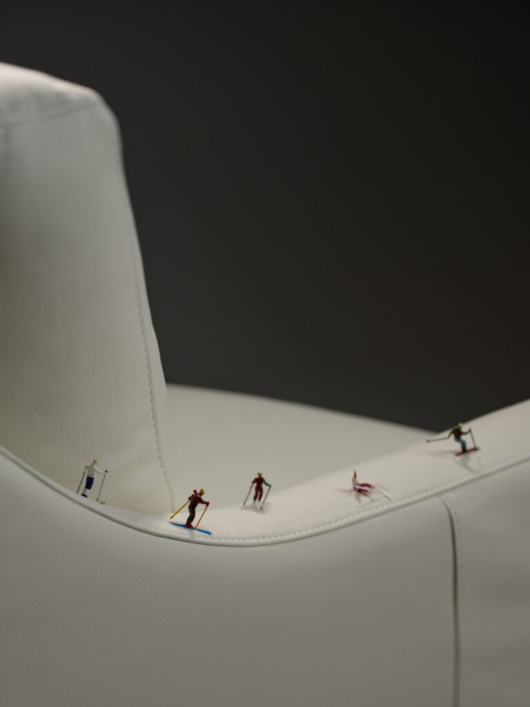 I was on Instagram recently and noticed that American Leather’s feed felt different—unexpectedly edited, purposeful, pithy. A flock of tiny skiers sliding down the slope of a chair arm. A sleeper sofa adorned with a cascade of award ribbons. Less explaining. More suggesting.