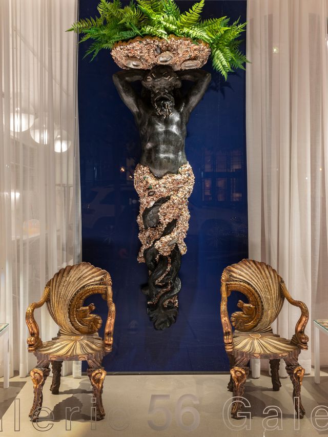 The exhibition also features early works by André Dubreil including Desk and Chair,which was first exhibited at Themes & Variations in his first solo exhibition in 1986; the impressive and rare Messanger Console by Mark Brazier-Jones; themonumental Neptune wall sculpture by Anthony Redmile; sculptural jewelry by Eileen Coyne; hyper-realistic ceramic sculptures by Anna Barlow; and large-scale wire sculptures by Benedetta Mori Ubaldini.