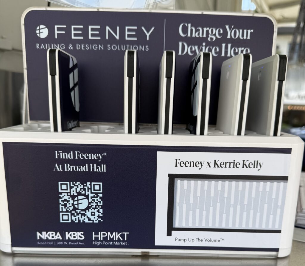 The first, a new initiative from High Point Market Authority and the good people of Feeney – portable, loaned chargers. Available at every white information trailers across market, these chargers are available to borrow until the charge runs out and can be returned to any information trailer for re-charge/exchange. Game changers.