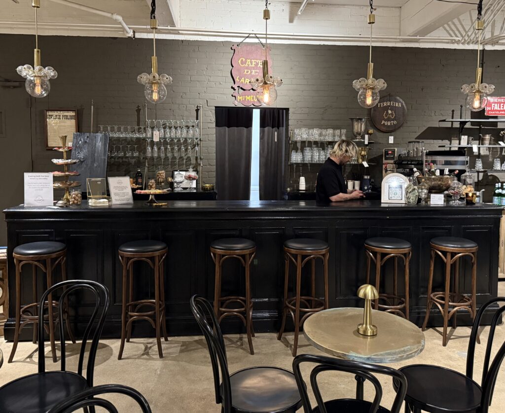 Secondly, the 313 Space. Ever beautiful, it offers one of the most peaceful outdoor spaces at market. You can hear the birds singing, bees humming and soft breeze moving through as you take a moment to soak it all in. The other location at the 313 Space? Let’s call it ‘the back bar’. Accessible through Collected by Schwung, it is located on the first floor at what I always consider “the end” of the Schwung space. It’s special because it offers hand crafted, made-to-order coffee with milk choices, water, beer, wine, and prosecco, sweet treats and homestyle, takeaway sandwiches plus a small bistro-style seating area free of charge. The staff are also the loveliest of people, making this a standout.