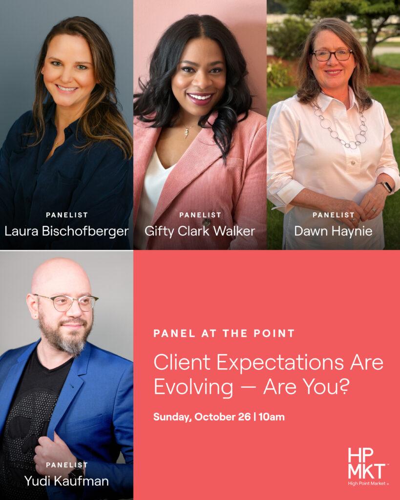 Client Expectations Are Evolving — Are You? | 10 am at The Point with speakers: Gifty Clark-Walker, Yudi Kaufman, Laura Bischofberger, ASID, Dr. Dawn Haynie, Ph.D.