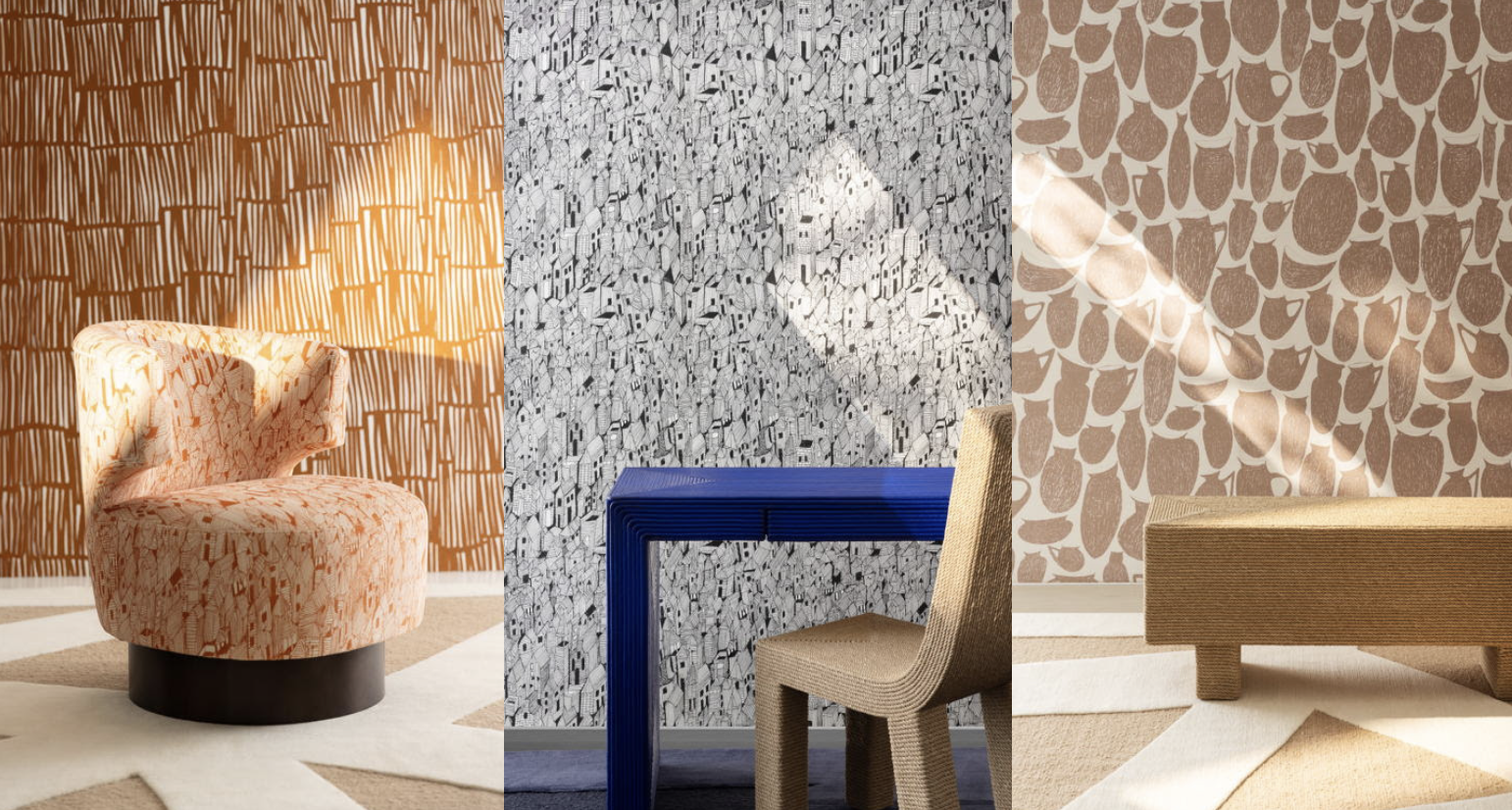 New York, NY | July 2025 – Holly Hunt is pleased to announce the debut of a new collection of textiles, wall coverings, and rugs with Christian Astuguevieille, the enigmatic French artist whose career spans fashion, fragrance, sculpture, and furniture design. This latest offering builds on the creative partnership between Holly Hunt and Astuguevieille, who has been represented in the brand’s portfolio through his distinctive woven rope furniture, as well as art and objects for over 25 years. Known for his bold linework and whimsical drawing style, he extends his boundless creativity to the world of interior surfaces in this new collection with Holly Hunt.