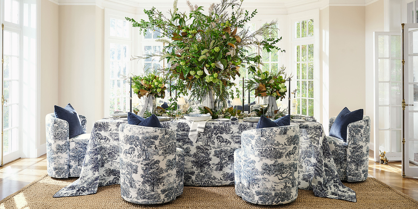 “It’s a pleasure to collaborate with Brandon Maxwell to extend his signature sophisticated, modern take on American glamour into the world of interiors,” says Monica Bhargava, Pottery Barn President. “The striking toile, deep rich colors, and unexpected details offer our customers an elevated, designer touch that transforms a space.”
