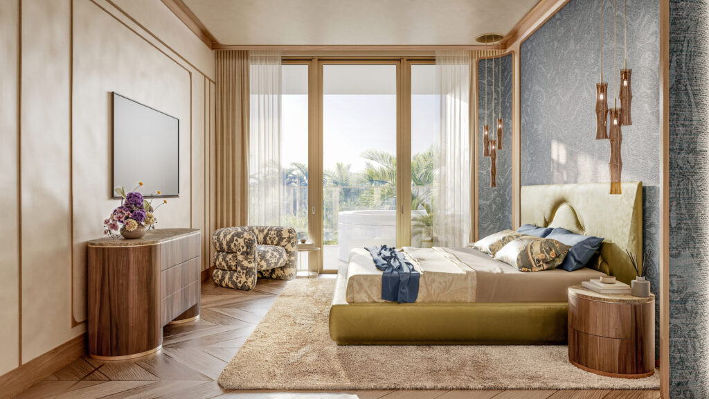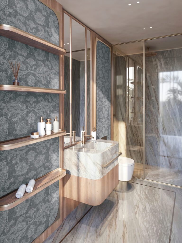 The newly released interior renders reveal how ETRO’s visual codes of colour, texture and pattern have been reinterpreted for a residential retreat defined by Phuket’s natural rhythms. Created by The One Atelier, the residences unfold as a carefully layered composition of light, proportion and materiality, balancing ETRO’s eclectic aesthetic heritage with a sense of calm and spatial clarity.