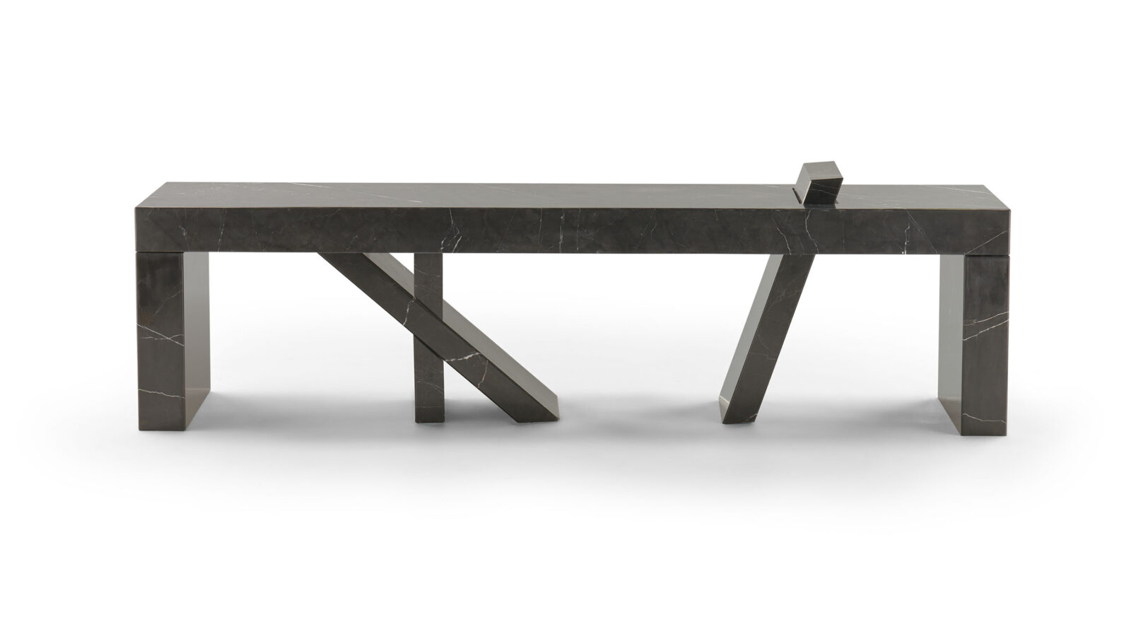 The Walking Bench, which garnered Best Seating of Year, highlights angled legs and marble construction, and was originally designed as indoor/outdoor seating for the entry foyer at the Kips Bay Show House in Dallas.