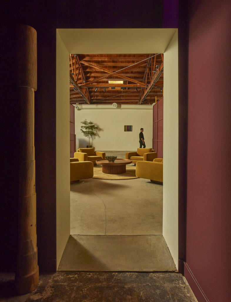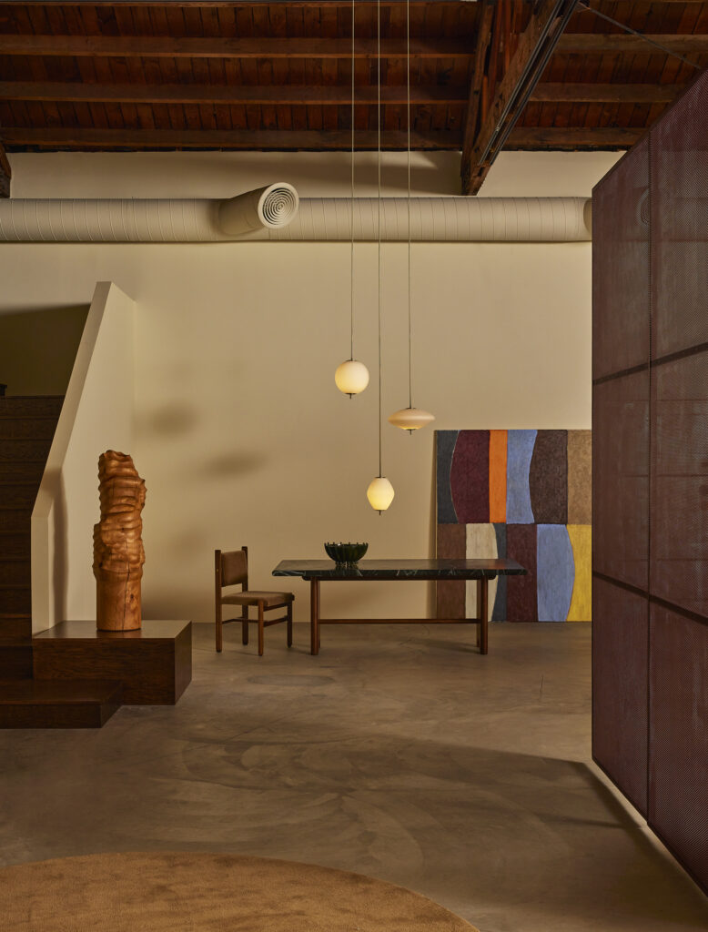 By leaning into the building’s historic character, Studio LF connects past and present. The renovation preserved the soaring ceilings and 1930s architectural details, creating an atmosphere that honors the original warehouse while reframing it for a contemporary design audience.
