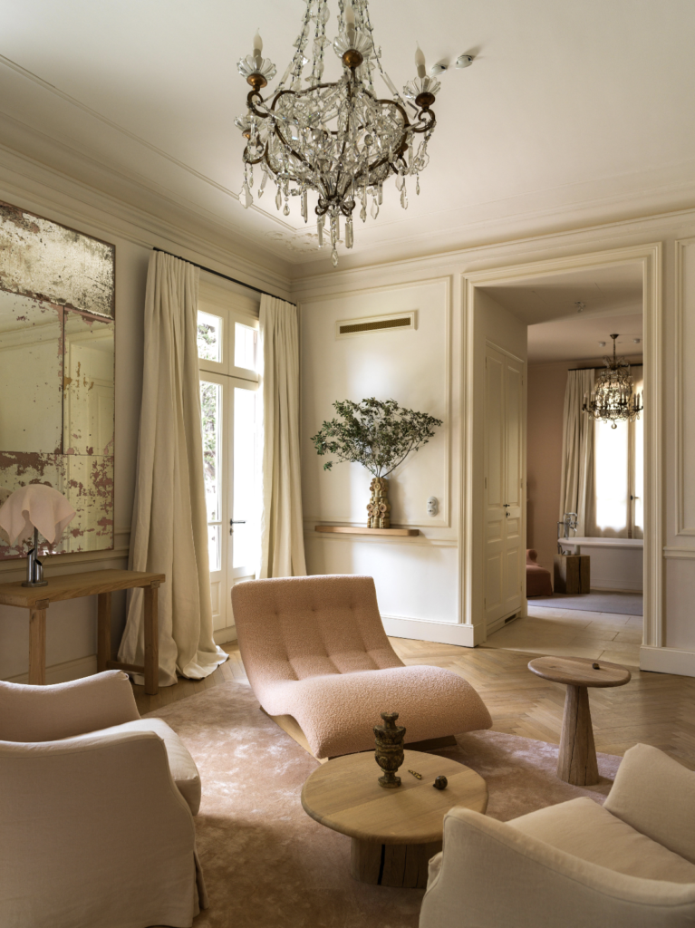 In this project, textiles become more than decoration: they are spatial anchors. Fabrics define rooms, soften acoustics, frame views, and offer a tactile warmth usually found only in private homes. For a hospitality project, Marianne Tiegen Interiors strategically used textiles, focusing on key elements such as canopies, screens, bed throws, and wall panels to create intimacy and comfort without overwhelming the classical architecture.