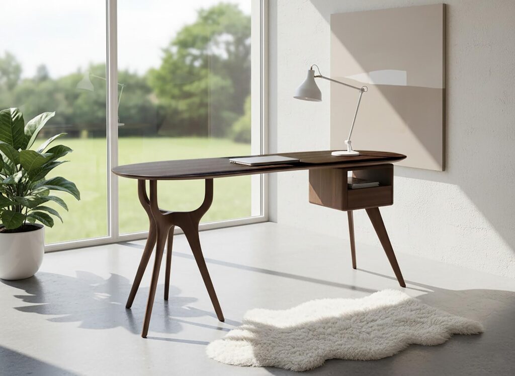 Greenington Wynn Writing Desk – Sustainable luxury meets modern in the Wynn Writing Desk, where sculptural elegance meets purposeful design. Crafted in solid bamboo, the fluid, organically shaped top that exudes modern sophistication. Its distinctive base—shaped with graceful curves and a floating drawer pedestal—offers both visual intrigue and practical storage.