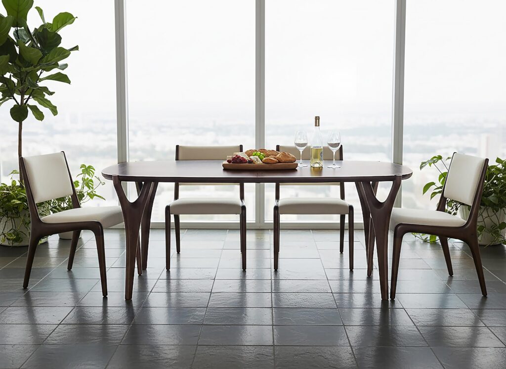 Greenington Belle Dining Table – Bold in design and refined in craftsmanship, Belle pairs a sleek oval silhouette with architecturally inspired legs—precision-carved to balance strength with sculptural beauty. Crafted in sustainable solid bamboo and finished in luxurious Black Walnut, Belle captivates with its graceful lines, contemporary luxury, and undeniable visual intrigue that highlights the artistry of nature.