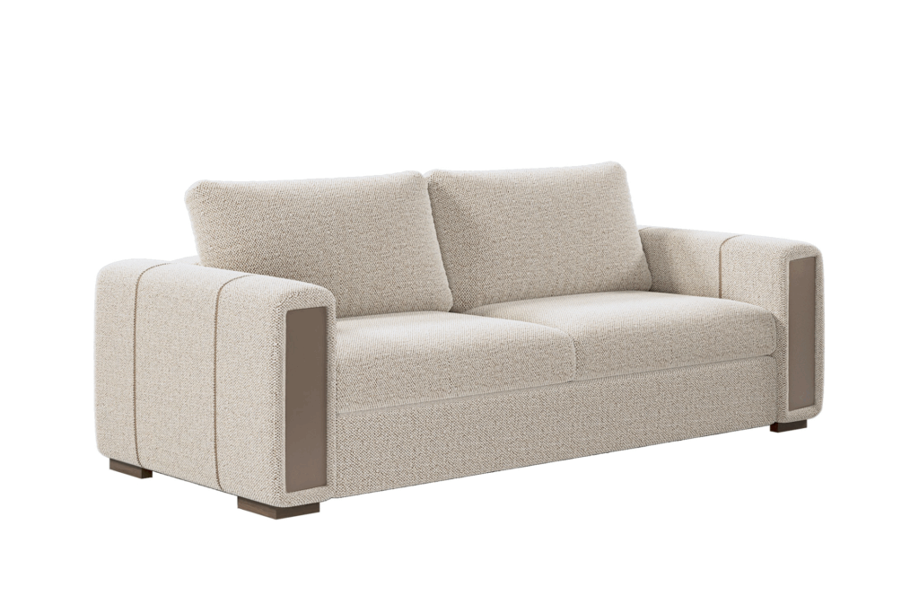 Evolved from their iconic Coco Sofa, the two-seater Origen Sofa 100 combines tailored comfort with distinctive leather-accented arm fronts. Fully customizable, it features soft fabric upholstery on the main structure paired with rich leather detailing, creating a sophisticated balance of texture and form—perfect for elegant, enduring spaces.