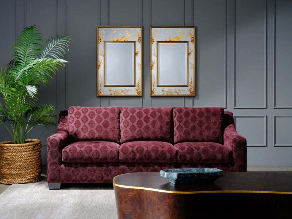 Drake Sofa – A timeless three-over-three style with plush cushions for sink-in comfort. Gracefully sloping clean-lined arms and tapered wood-block legs add a contemporary feel. Explore the many ways you can customize this inviting Burton James classic. Featured in the new Saratoga Claret fabric.