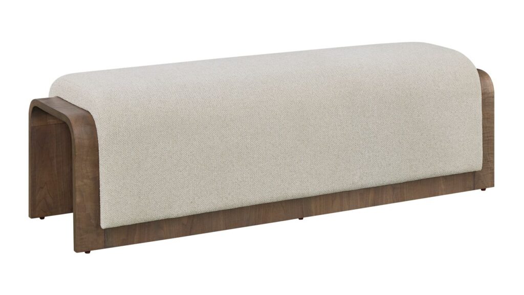 Universal Furniture’s new Modern Mist & Veil collection focuses on simple, modern design with two core finishes: Mist, a light oak, and Veil, a dark oak. The collection includes Haze, a figured walnut accent that adds texture and warmth. Materials like White Quartz, Pyrite, Emperador stone, and smoked gold metal provide subtle contrast, while cast aluminum and leather details appear across bedroom, dining, and living pieces. Standout pieces include the Haze Bench, Mist Display Cabinet and the Modern Strata Bed with storage.