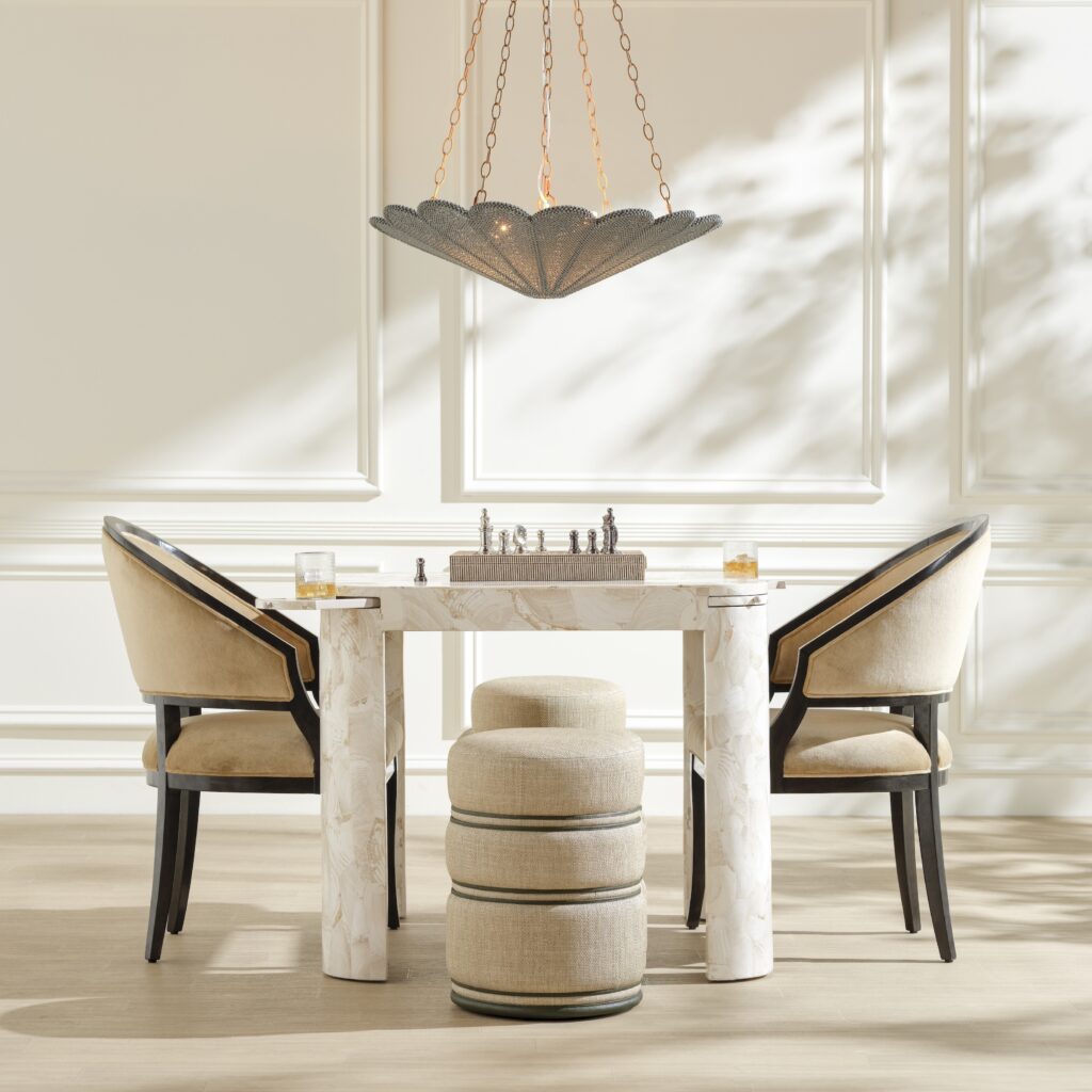 The Chandelier Jenkins is inspired by the hanging pendant lights found throughout The Met’s Great Hall, one of the Museum’s most visited spaces. Their modern interpretation is a striking piece that blends elegance and functional beauty.