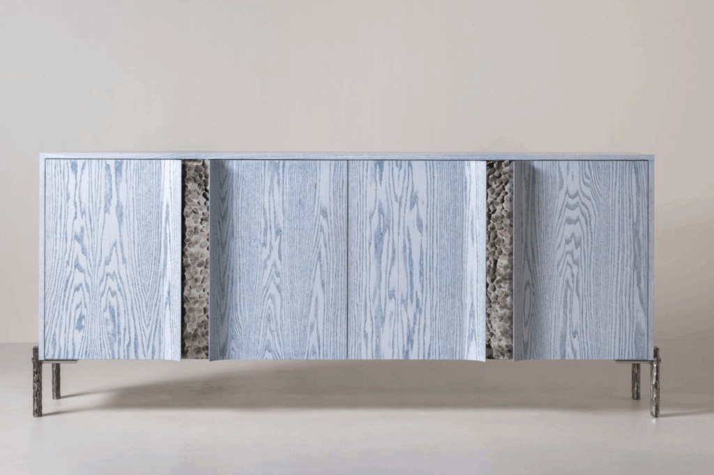 Abner Henry is showcasing the Fall 2025 Abner Henry x Dwayne Bergman launch with 25 new additions, growing the collection to nearly 100 pieces. Highlights include the Ayr Nightstand with its striking sculptural silhouette, the bold Taormina Sideboard with custom brass hardware, the architectural Mdina Dining Table, the expanded Roma Metal Leg Console with four doors, and the elegant Garda Bench.