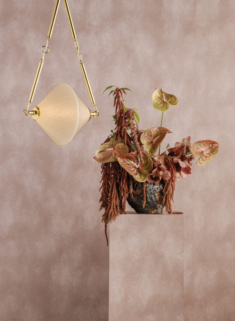 Corbett Lighting, the luxury, statement-driven brand within Hudson Valley Lighting Group, has unveiled a new designer collaboration with MONIOMI, the Miami-based studio led by husband-and-wife team Monica Santayana and Ronald Alvarez. The pieces feature concentric domes, softened pyramids, and suspended orbs in vintage brass, pink onyx, and hand-blown glass. Raw, matte finishes highlight natural variation, creating depth and a distinctive, glowing warmth.