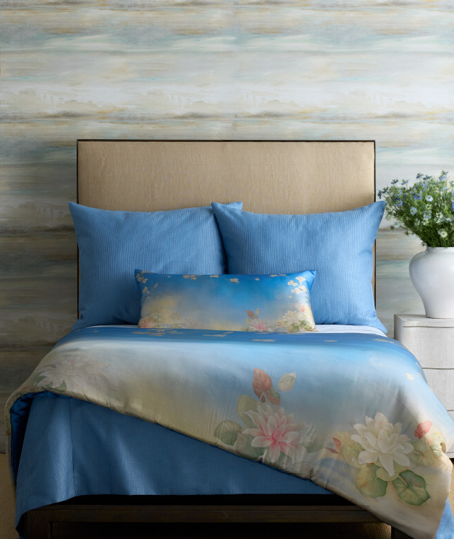 Ann Gish is back with another beautiful bedding collaboration with The Met. Inspired by a silk gauze summer kimono from the Meiji period, their Asagao Design is printed on silk charmeuse.