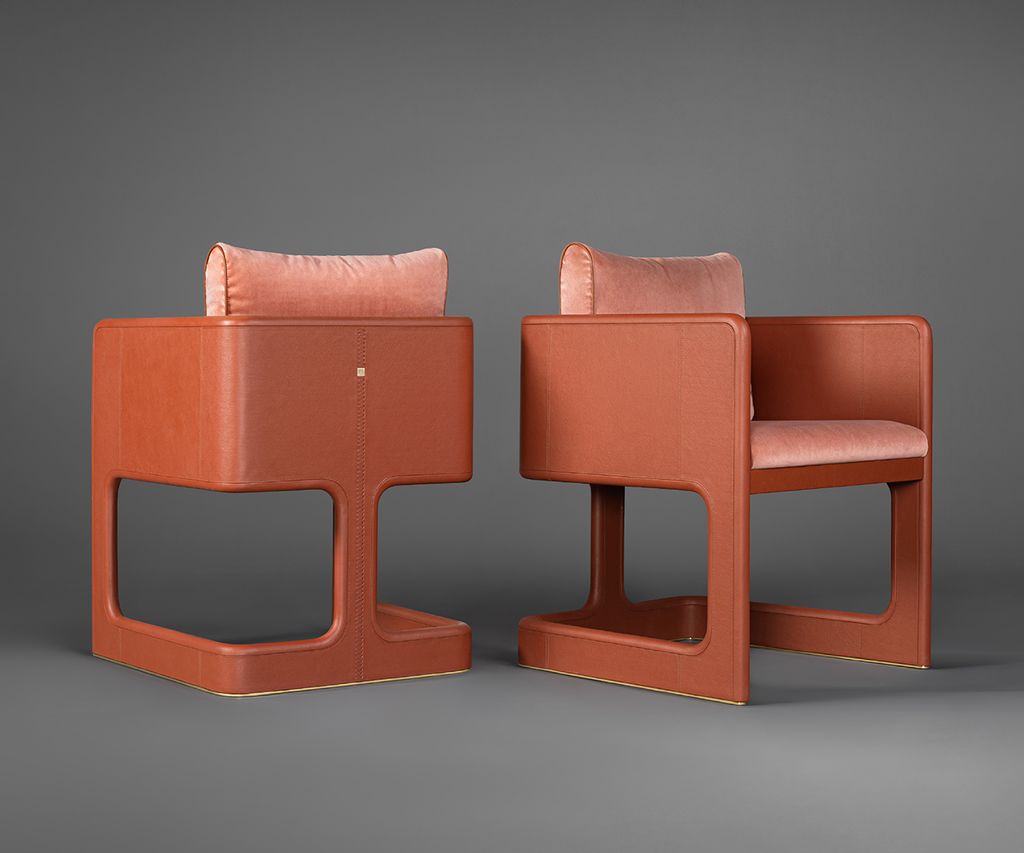 Renner draws its essence from the iconic design language of 1970s sculptural furniture. It embraces a bold yet sophisticated aesthetic, featuring deep, inviting seating in soft, playful hues. Renner pays homage to this era with a distinctive combination of a robust leather-wrapped body, contrasted by velvet upholstery on the seat and back cushion. An interplay of curated materials, tone, and comfort.