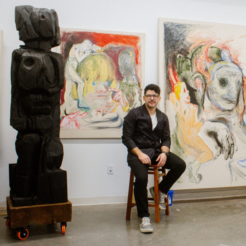 Napoles Marty is a sculptor and painter whose work uses the human body as a vessel for meaning, blending classical and modernist forms with raw, often grotesque figures. Through carving, charring and painting, Marty creates beings that are part human, part creature – spiritual protectors that explore power, vulnerability, transformation and myth, while reflecting personal dreams and his Cuban heritage.