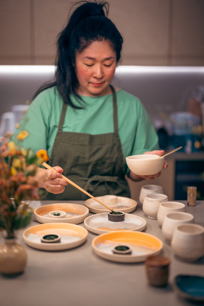 In addition to producing exceptional products, Gunawan has adopted a purposeful, tactful, and inventive approach to marketing. One notable strategy involves a collaboration with Culinary Curation, wherein she hosts tea omakase dinners at OWIU’s downtown Los Angeles studio. Renowned tea sommelier and chef Tomoko Imade Dyen curates courses of tea and wagashi pairings, plated on OWIU goods. I was fortunate to attend the most recent event and in addition to being a beautiful evening, it was a masterclass in experiential marketing. (Reserve your spot to the next one here.) Read on to explore the key takeaways that brands in the lifestyle space would be wise to take note of to set themselves apart in the saturated marketplace: