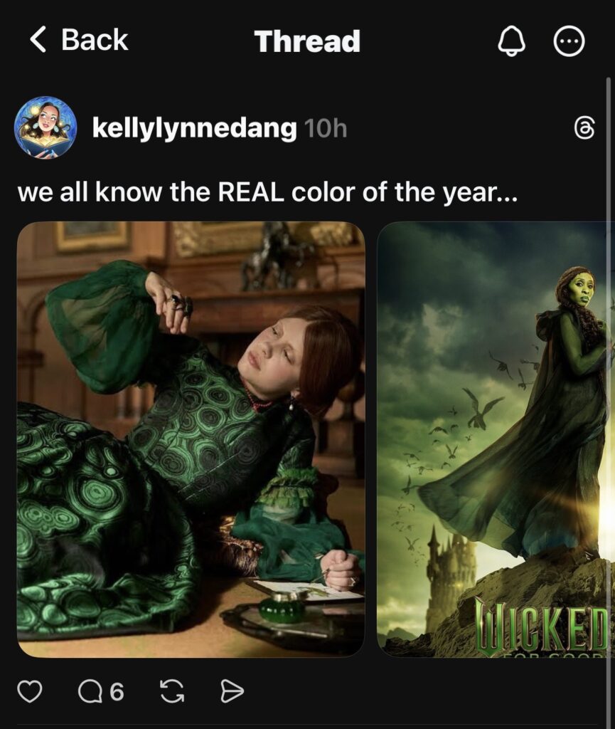 The internet had a field day with this year’s Pantone selection. Criticisms range from calling the COTY pick boring to tone deaf. One viral meme renamed the shade “landlord” white, a reaction to the rising cost of homeownershipin the US, and Threads users banded together to override the decision entirely, declaring Phthalo Green – a shade reminiscent of the Emerald City in Wicked and of Mia Goth’s iconic Kate Hawley-designed gown in Guillermo Del Toro’s Frankenstein (the chosen front runner for the Production and Costume Design Oscars) – the real color of the year instead.