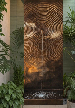 Blue draws attention to the sunroom where she designed a water feature, a quiet, steady presence that brings both visual and auditory calm. “It softens the environment,” she says, “and makes the space feel restorative and alive.”