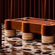 And then there are the exaggerated, hugging lines of a plush sofa emerging from a Nathan Anthony Furniture x Tina Nicole x Sahara Novotna collaboration. Furniture designer Tina Nicole and multimedia artist Sahara Novotna designed the sofa. Part of the Alais collection, the Rubenesque piece is upholstered in a deep green Italian velvet fabric, with dramatic resin ball feet.