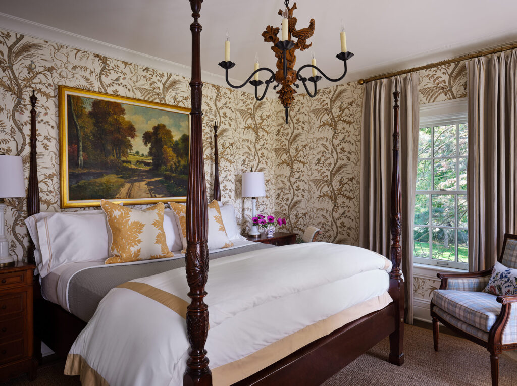 Designed to welcome groups and families of all ages, Fairview’s expansive layout, lush yard, and multiple gathering spaces make it ideal for connection and comfort. Guests also get exclusive, guest-only access to Wickwood Inn’s meals and amenities during their stay (available for an additional fee). Inside, light-filled spaces reveal layers of texture and story: Cowtan & Tout fabrics, antique furnishings, original artwork, and spa-like Waterworks marble baths with Matouk linens and laBottega amenities. Each detail reflects Horner’s belief that beauty and comfort are inseparable. “Fairview captures what I love most about Saugatuck,” Horner says. “It’s design that’s grounded in nature and community – where every element connects you to the place around you.”
