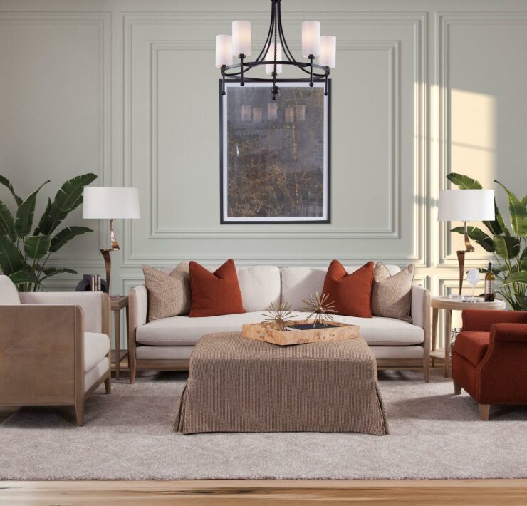 The company unveiled the group — including upholstered sectionals, sofas, benches, swivel chairs and sling chairs featuring a mix of woven and wood frames — during High Point Premarket March 20-21. The line also includes companion cocktail and end tables made with teak and aluminum frames.