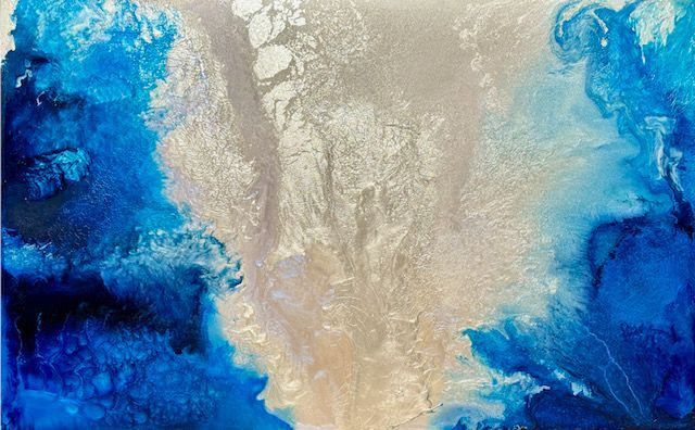Over the last five years, Woodruff has survived the darkness of three major surgeries and radiation for near-lethal oral cancer. The surgeries left her unable to eat or speak for almost three years. For the first years after the main surgery, Woodruff’s focus was surviving – she describes a blur of just getting through each day. Returning to painting became a distant hope. Although eating and speaking remain difficult, Woodruff is driven by an internal fortitude – she pushed herself back into her studio practice with steadfast determination.