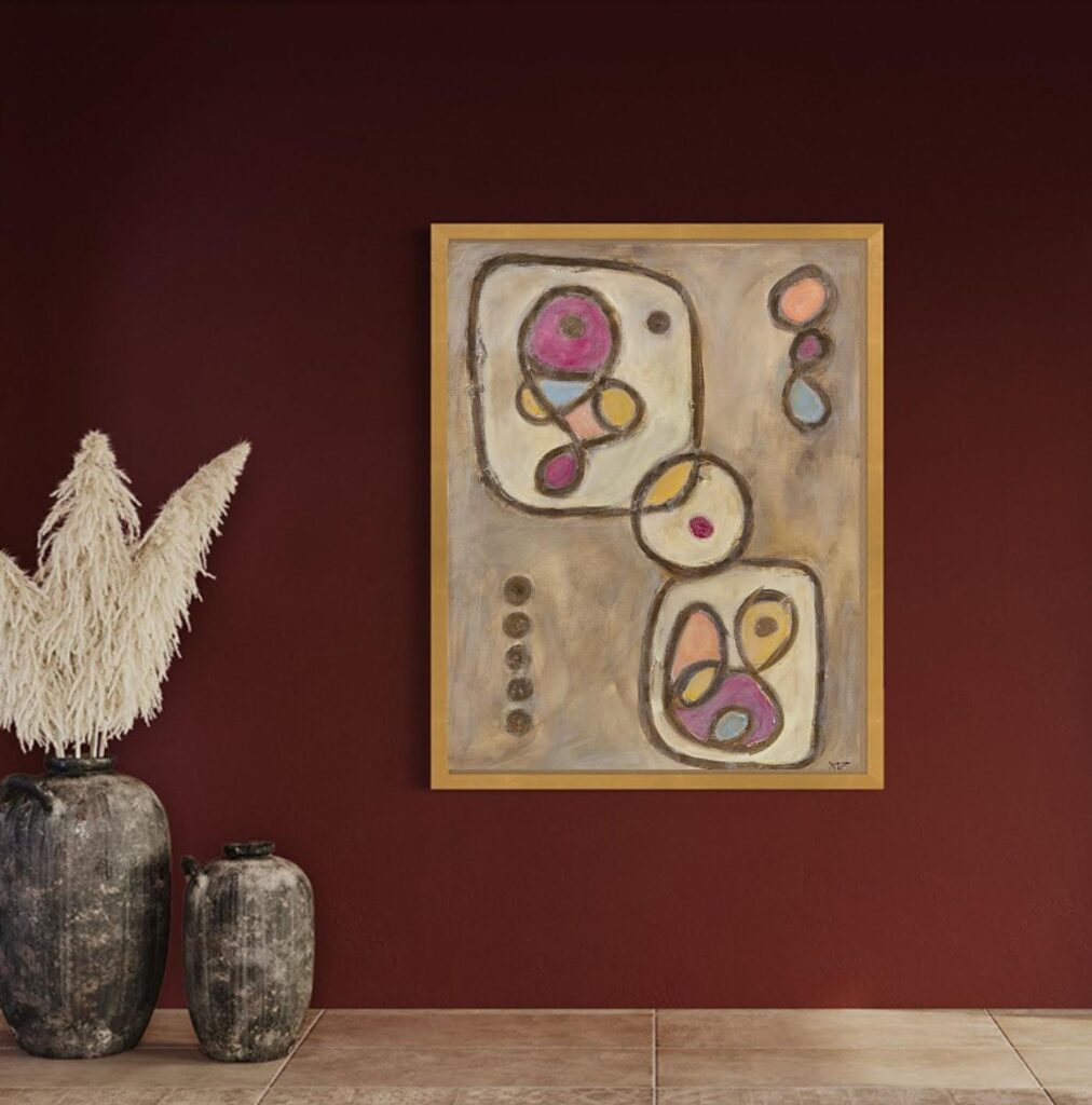 Smith began by painting figurative and landscape portraits, but his style has evolved into modern abstracts, mixing acrylic, oil, watercolor, pastel, pencil and collected items.