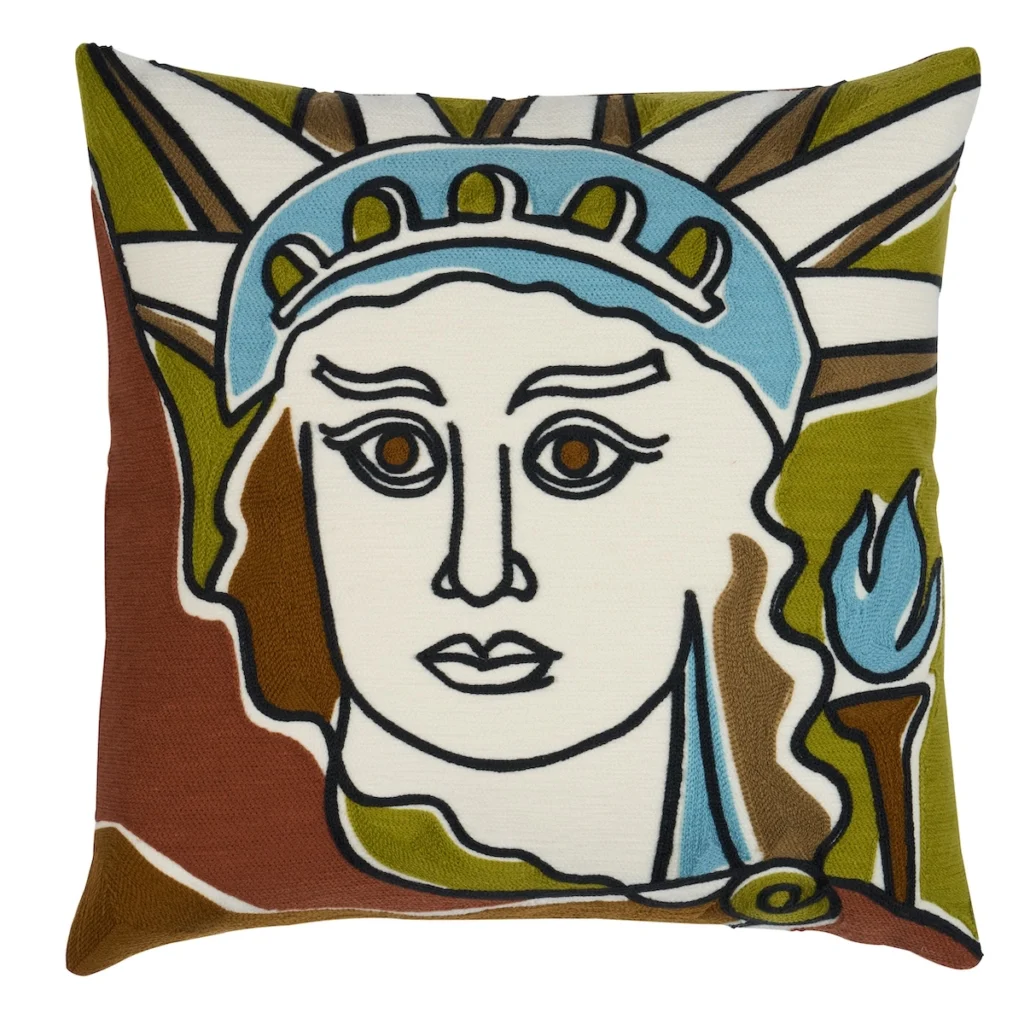 First image: Schumacher’s Liberté Pillow for its Atelier Paris Collection. Second image: Tori Mellott as photographed by Francesco Lagnese.