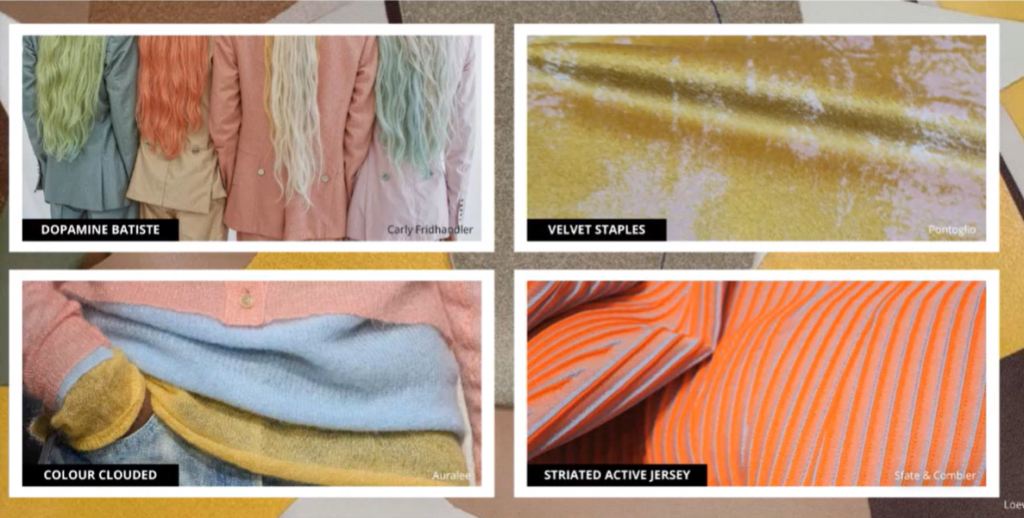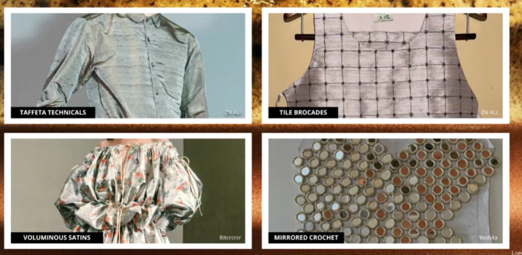 Here’s a look at some of the fabric types, patterns and textures representative of this trend: