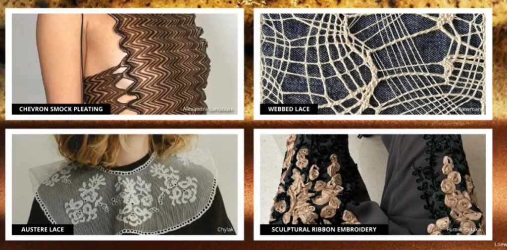 Here’s a look at some of the fabrics and trims that are part of the Ritual trend: