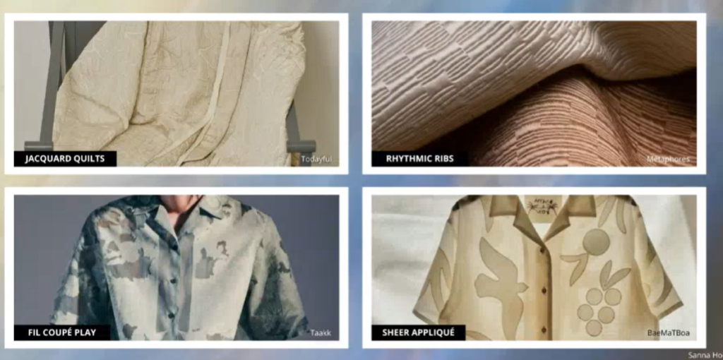 Those are just some of the intriguing, delicious fabrics, patterns and embellishments that will be making their way into apparel in 2027, according to a “Material Sourcing Trends” overview presented Feb. 5 by Abeni Watts, marketing manager for content at fashion forecasting and insight firm Fashion by Informa, and Julia Skliarova, director of materials at trend forecasting and consumer insights firm FS.