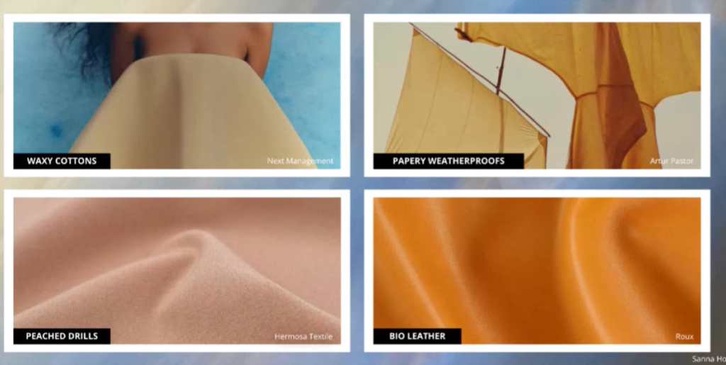 “Our third theme, a Space for Solace, is a space for consumers who are dealing with accelerated fatigue and instability from global systems and the noise of technology by moving away from the performative and toward more a restorative, soothing and emotionally connecting kind of dress code,” Skliarova said.