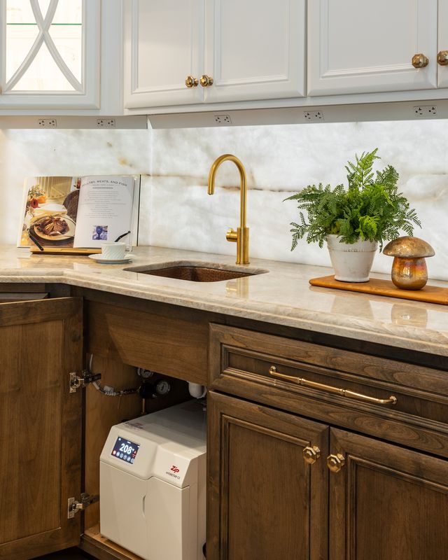 “They love that they can poach a piece of salmon in boiling hot water and never even turn on the oven,” Glaister says. “We’re placing them adjacent to the cooktop and adding bar sinks beneath, replacing the once-coveted pot filler.”
