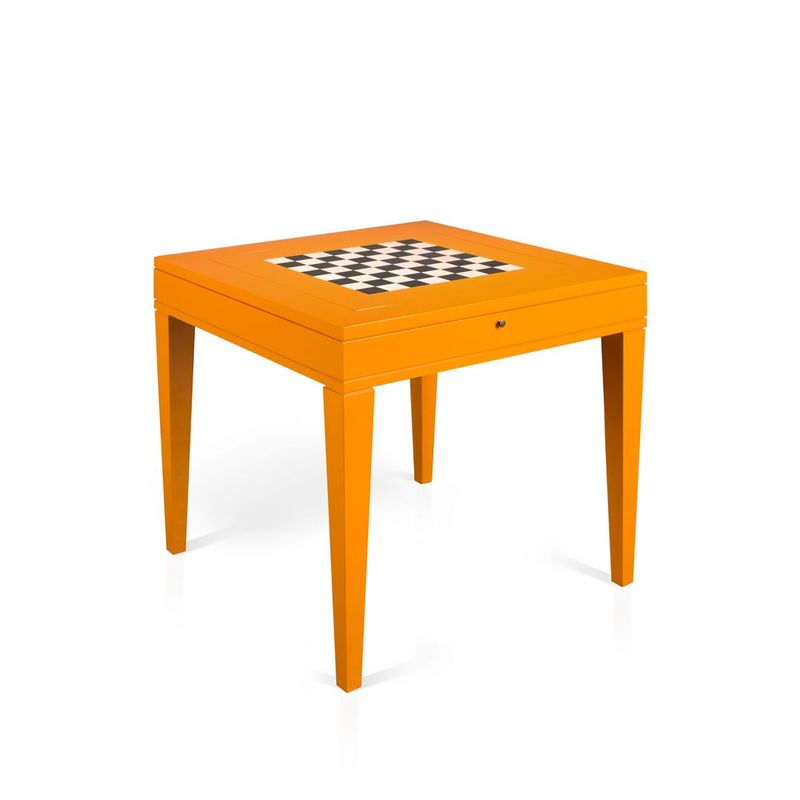 Hurtado has added the option to finish any piece in its Evolution line in any shade from the RAL color chart, with both matte and high-sheen lacquers available. The MON game table, with reversible chessboard surface, illustrates the innovation. It’s shown here in a vibrant, playful orange but is also available in more subtle hues to tailor it to any space.