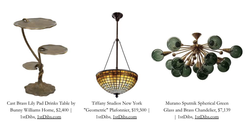 Furniture and lighting trends were led by early to mid-20th century aesthetics, highlighting a preference for modern works from the Art Nouveau and Art Deco movements: