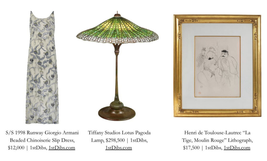 | “Twenty-five years into the new millennium, design lovers are showing nostalgia for creations dating back to the beginning of the 21st century, as evinced by the resurging popularity of Y2K fashion,” says Anthony Barzilay Freund, 1stDibs Editorial Director and Director of Fine Art. “Looking further back, design movements from the early 1900s — namely Art Deco, which was officially launched by a famed Paris exposition in 1925, and Art Nouveau — have seen an uptick of interest from 1stDibs shoppers. Also trending: Tiffany lighting, Old Master–inspired oil paintings and jewelry from such legacy brands as Tiffany & Co, Cartier and Van Cleef & Arpels. These are just a few examples of the heritage pieces that collectors are turning to as they aim to bring richness and historical character to both their interiors and wardrobes.” |
